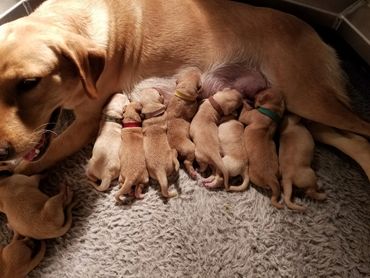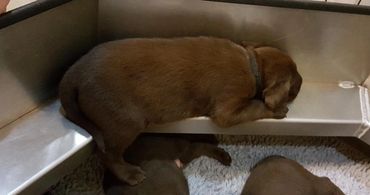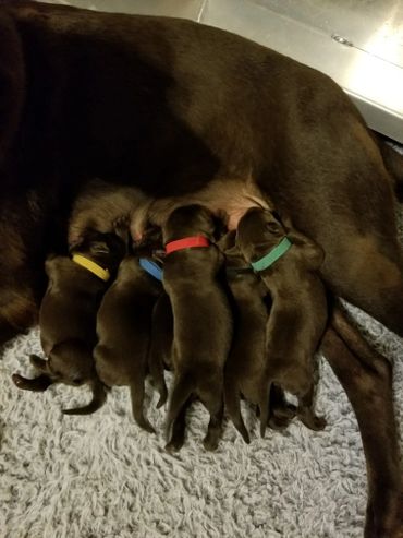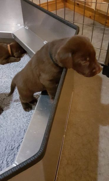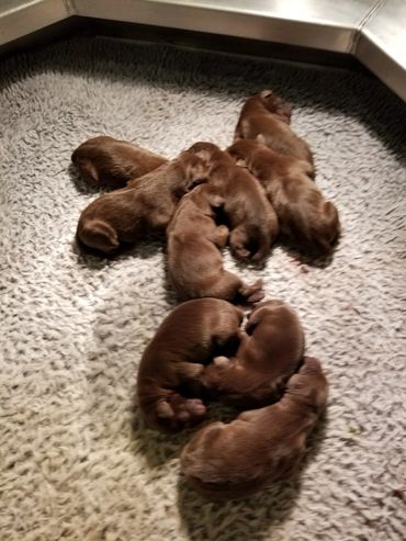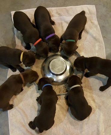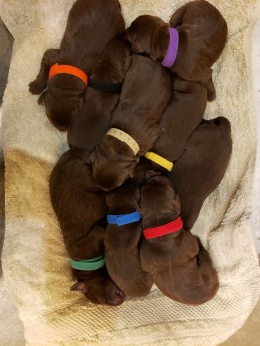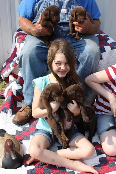 The pups are taken swimming, if water is available, and are exposed to birds! They are worked and played with extensively, kennel trained and socialized before they leave at 7 to 8 weeks of age.