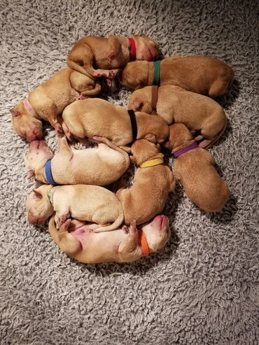 Our Pups all have AKC Unlimited Registration and UKC Registration and carry a 26 month hip and eye guarantee. They have had their first puppy shots, are wormed several times, have their declaws removed and are scented to wild wings and they will be chipped.
